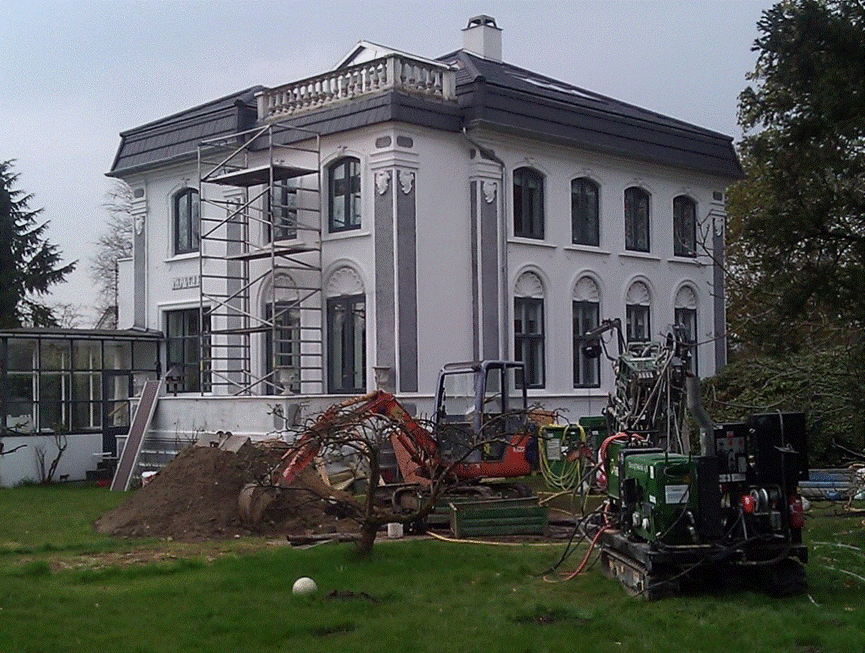 derefter store mængder jord og græstørv, formet som en rund, markant høj, der